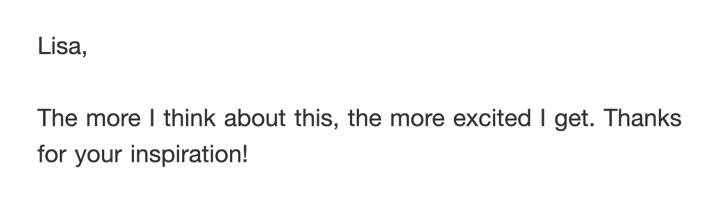Lisa overdelivered! 🙂 I had no preconceived notions around the process, but I don't think I expected such a high-quality service! She was incredibly patient throughout the ideation phase, and so efficient and easy to communicate with from start to finish. I am absolutely delighted with the result!